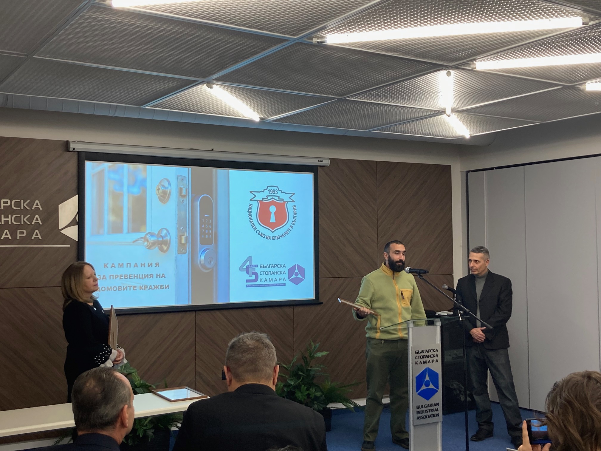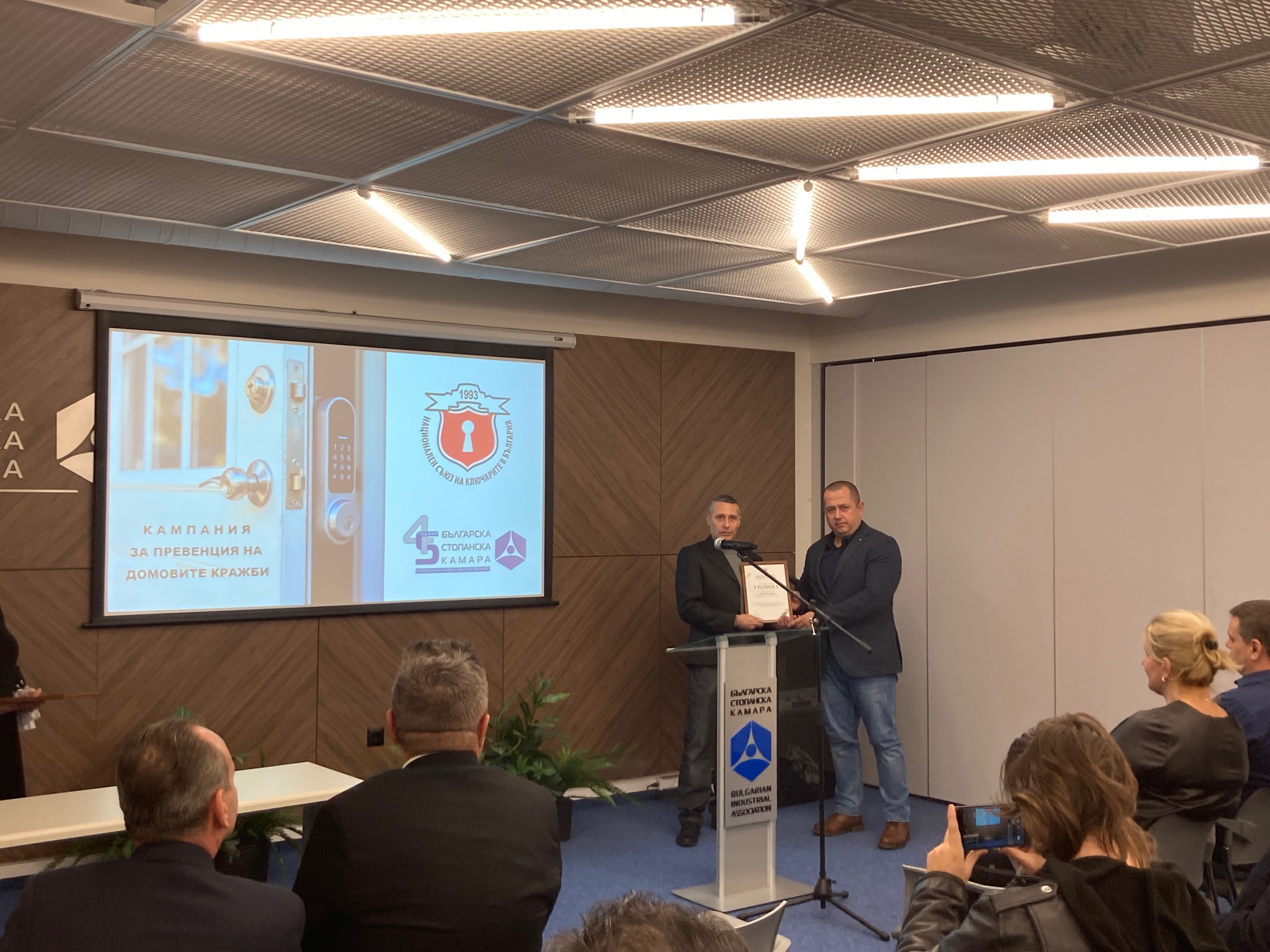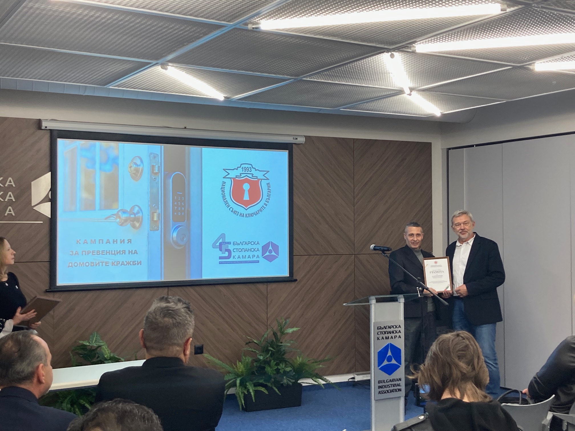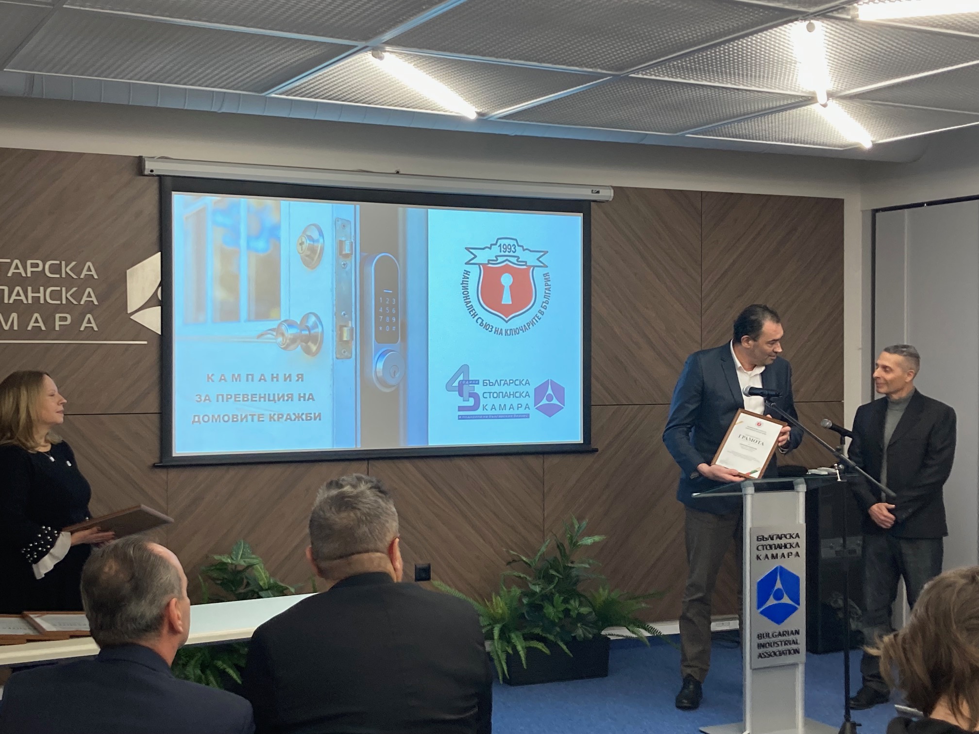 В Българската стопанска камара се проведе официална церемония по награждаване на партньорите, допринесли за успешното реализиране на националната кампания за превенция на домовите кражби, организирана от Националния съюз на ключарите в България (НСКБ). Съюзът е дългогодишен член на БСК и активен участник в усилията за повишаване на сигурността и професионалните стандарти в сектора.